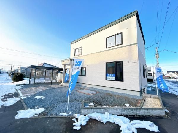 This detached house, built in February 2001, offers a comfortable 4LDK layout across two stories with a total floor area of 132.48㎡. The property is situated on a generous 200.29㎡ corner lot in a quiet residential area of Asahikawa, Hokkaido. The location provides convenient access to public transport, with Higashi-Asahikawa Station on the Sekihoku Main Line approximately a 13-minute walk away.
