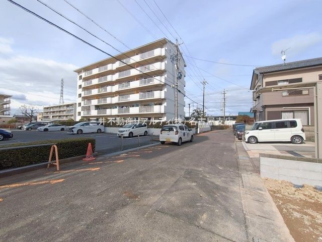 The property's location is highly convenient, with a supermarket (MaxValu Komaki Station West Store) approximately 950 meters away, reachable in a 12-minute walk. The front road on the west side is approximately 6.0 meters wide, providing good access. Parking space for two vehicles is available (subject to vehicle type). The building is a two-story wooden structure.