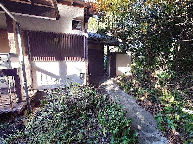 This single-story house in Ito City offers a peaceful living environment surrounded by greenery. Built in 1970, the property features a 3K layout with a total floor area of 54.39 square meters. The wooden structure includes a living/dining area that connects to a Japanese-style room, a kitchen with a window, and a bathroom that can be filled with natural hot spring water. A wooden terrace and a garden provide outdoor space, with the land size being a generous 493 square meters.