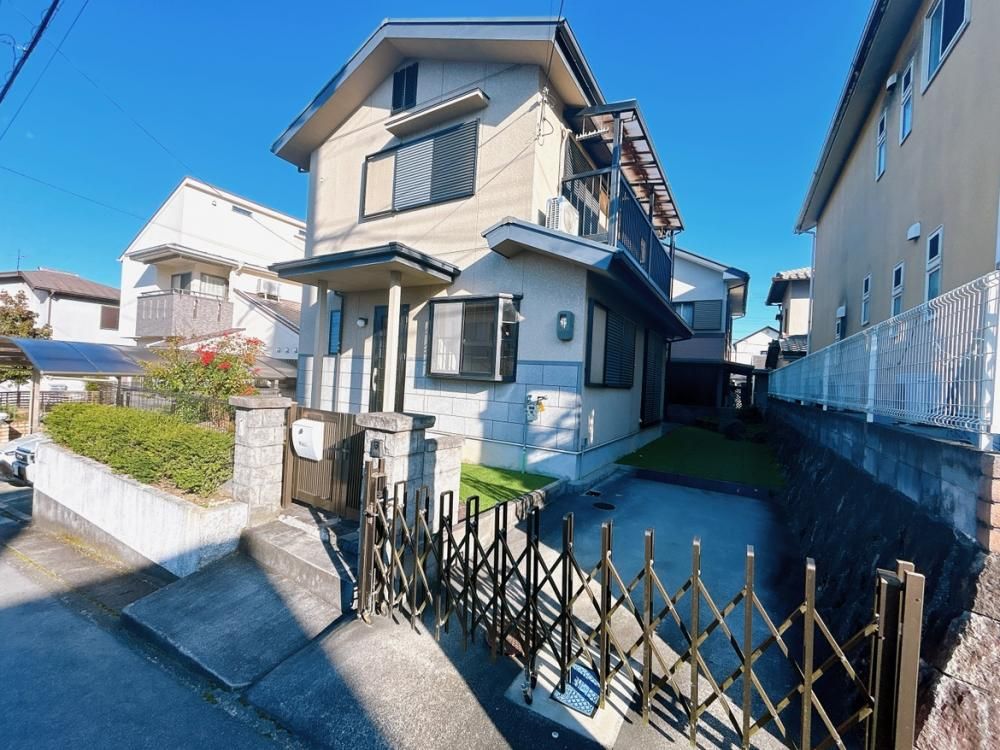This well-maintained detached house, built in 1999, offers a comfortable 4LDK layout across two stories, with a total floor area of 94.39 square meters. The property sits on a 149.81 square meter plot and features a bright living room with large windows and a sliding glass door, ensuring a naturally lit and open atmosphere. The layout includes a 6-tatami mat Western-style room on the first floor that can serve as a guest room with direct access from the entrance, and a Japanese-style room adjacent to the living room, offering flexible space for family or visitors. Upstairs, an 8-tatami mat Western-style room with windows on two sides provides a spacious feel, ideal for a master bedroom.