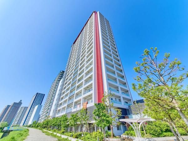設備・特徴として、専用ポーチ付き、オール電化、24時間換気システムを完備しています。室内からは東京スカイツリーを望むことが可能です(天候による)。キッチンにはディスポーザー付きシステムキッチン、食器棚を完備。浴室はフルオートバスで、浴室暖房乾燥機、浴室換気乾燥機、浴室サーモフロアを採用。洗面化粧台は三面鏡型・人造大理石カウンターです。バルコニーはリバービューで奥行き2m、防水コンセントとスライド式物干金物を備えます。玄関前にはサイクルポートやトランクルームを完備した専用ポーチがあります。