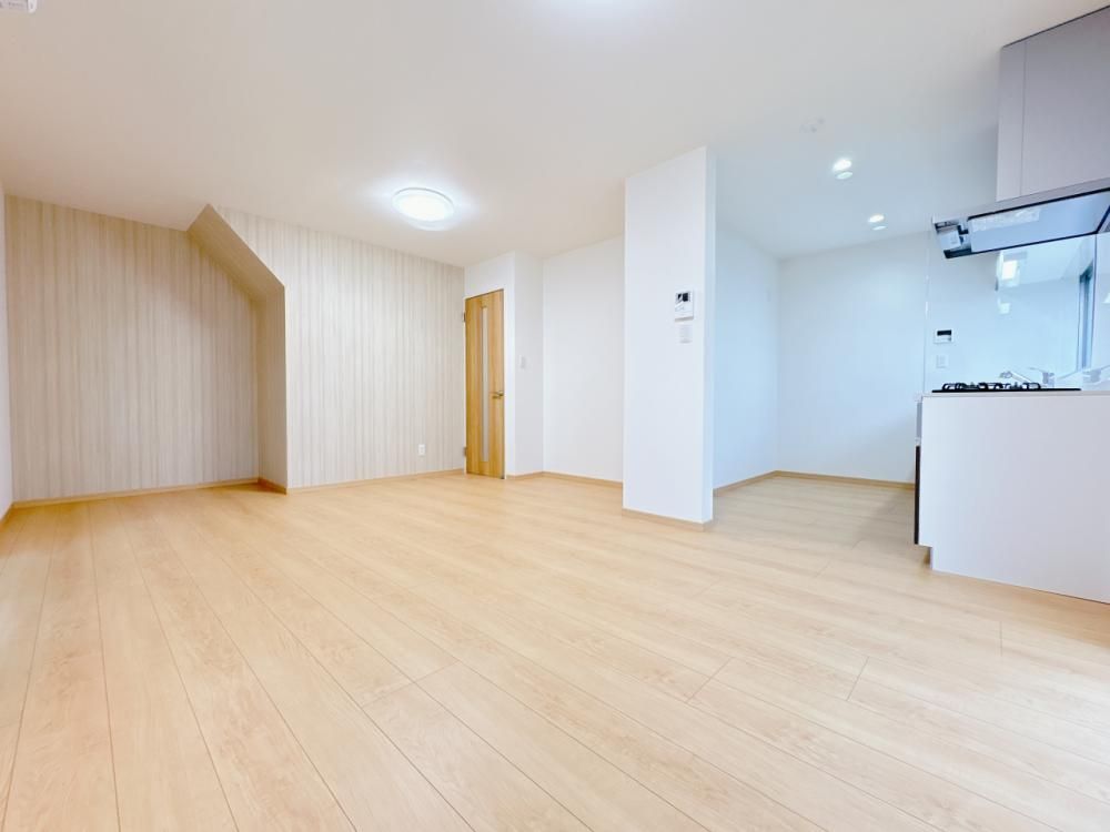 The equipment and features have been entirely renewed. The kitchen is a new Haus Tec unit approximately 255cm wide. The unit bath, also by Haus Tec, is new and features a spacious bathtub. The entrance door has been replaced with a new single-swing door, and the genkan area has new flooring and a brand-new shoe box. All interior doors and fittings are new. Each room is equipped with a closet featuring a shelf and hanging rail, with the second-floor west-facing room boasting a full-wall closet. The washroom floor has been replaced with cushioned flooring for comfort underfoot, and the vanity features a three-sided mirror. The toilet is a new TOTO unit. A monitor-equipped intercom provides security. The water heater is new. The roof has received waterproof coating.