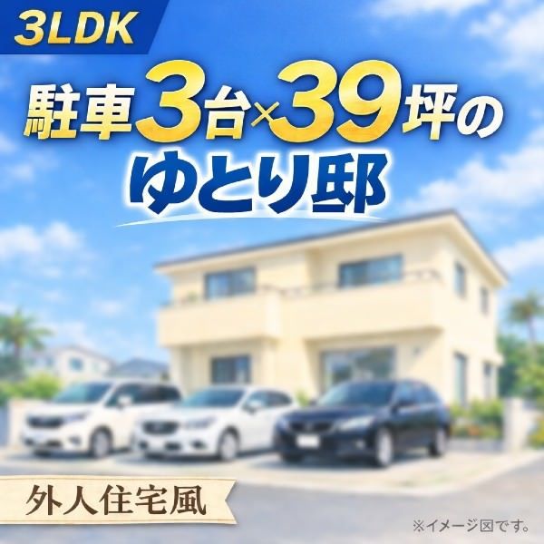 This property is a reinforced concrete (RC construction) detached house located in Akeno, Uruma City, Okinawa Prefecture. Built in 2005, the 2-storey home offers a generous 3LDK layout with a total floor area of approximately 129.18 square meters (about 39.1 tsubo). The living room is notably spacious at 21 tatami mats. The property sits on a land area of approximately 144.07 square meters (about 43.6 tsubo) and features parking for three vehicles in parallel.