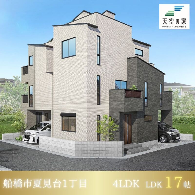 This newly built detached house, located in the popular Natsumidai 1-chome area of Funabashi City, Chiba, is part of the exclusive "Sky House" series. The property's standout feature is its spacious sky balcony, a private rooftop space perfect for relaxation, barbecues, sunbathing, or stargazing, offering a unique escape from the urban environment.