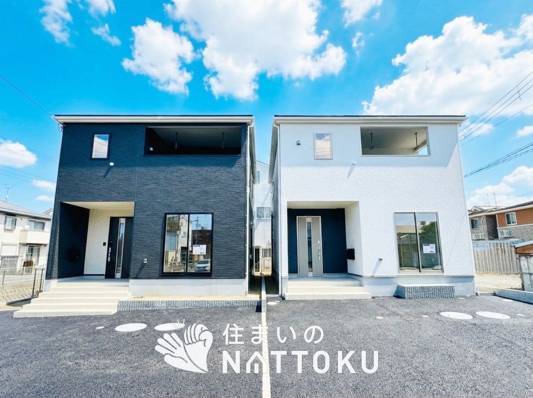 The development features two plots. Plot 1 is a 4LDK+S layout with a land size of 156.57 m², priced at 24.8 million yen. Plot 2 is a 4LDK layout on 144.23 m² of land, priced at 25.8 million yen. Both houses have a total floor area of 108.54 m². Each property can accommodate parking for two cars on a 4-meter wide asphalt road in front. The exterior walls are designed to be cleaned by rain and offer excellent durability and weather resistance. The roof materials are lightweight and fire-resistant to reduce building load and shaking during earthquakes. High insulation and airtightness ensure comfortable living year-round, and measures against sick house syndrome have been implemented using the safest materials.