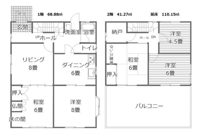 This property is a detached house for sale located in Inuyama City, Aichi Prefecture. The house offers a generous 5DK layout, providing ample space for family living. The total floor area is 110.15 square meters (approximately 33.32 tsubo), spread over two above-ground stories. The property sits on a sizable plot of land measuring 195.58 square meters (approximately 59.16 tsubo), with a building-to-land ratio of 60% and a floor area ratio of 200%. The main orientation for natural light is south, and the property includes a garden. Parking is available at no extra cost.