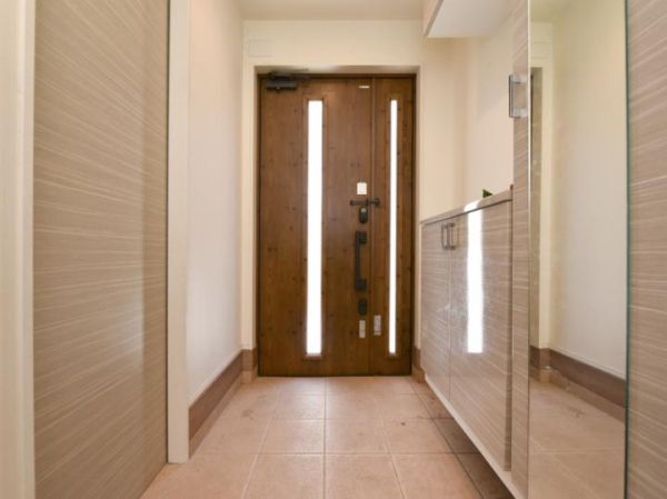 Key equipment and features include a system kitchen with integrated storage, making cleaning easy. The kitchen is equipped with an IH cooktop, which helps keep the room temperature comfortable during summer cooking. For year-round comfort, the house features underfloor heating, ensuring warm floors even in the cold winter months. Additional amenities include a walk-in closet, storage in all rooms, a TV monitor-equipped door phone, a bath with reheating function, a bathroom dryer, a shower-equipped vanity, and a washlet toilet. The property is all-electric and designed with barrier-free considerations. It is south-facing and includes a free parking space. Other noted equipment includes an air conditioner, trunk room, balcony, and hardwood flooring. The property is situated on a corner lot.