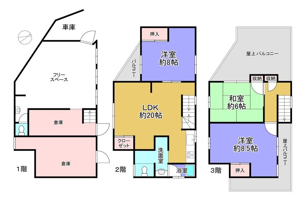 This property is a used detached house located in Miki City, Hyogo Prefecture. It is a 3LDK layout with a total floor area of 140.63 square meters on a land area of 121.93 square meters. The building is a three-story steel-frame structure built in September 1978. The property is currently being rented out (owner-change property) with a monthly rent of 73,000 yen, offering a surface yield of approximately 6.5% and a hypothetical full-occupancy yield of about 10%. The first floor is vacant and available for use. Renovations were completed in February 2025, including the kitchen, toilet, and washbasin (water areas), as well as new wallpaper and flooring throughout (interior). Equipment includes a system kitchen, counter kitchen, IH cooking stove, gas cooking stove, reheating function, bathroom dryer, shower-equipped vanity, washlet toilet, walk-in closet, storage in all rooms, TV monitor intercom, and floor heating. The property features all-electric, barrier-free design, south-facing orientation, and parking for one car (depending on vehicle type). Utilities include public water supply, propane gas, and sewer system. The property has a dedicated bath and toilet. It is a 6-minute walk from Miki Station on the Kobe Electric Railway Ao Line. The address is 3-8-34 Honmachi, Miki City, Hyogo Prefecture. Land rights are freehold. The property is in a quasi-industrial zone with a building coverage ratio of 60% and a floor area ratio of 200%.