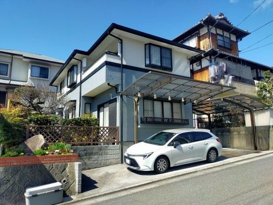 This detached two-story house is located in the Niho Minami area of Minami Ward, Hiroshima City, Hiroshima Prefecture. Situated on a hilltop, the property offers a sense of openness. The reinforced concrete roof was inspected and repaired two years ago (in 2024), providing peace of mind regarding maintenance. The property features a 4LDK layout with a total floor area of 127.31 square meters on a large, well-shaped plot of 184.7 square meters (over 50 tsubo).