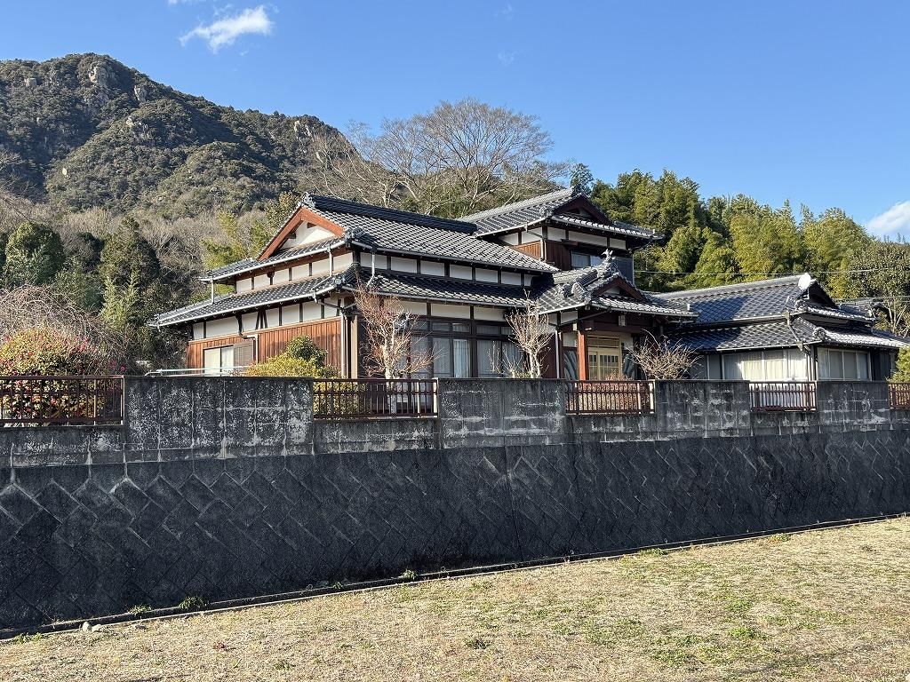 This unique property in Hofu City, Yamaguchi Prefecture, offers a rare combination of a spacious 9DK home, a large warehouse, and a cultivated field. The house itself has a total floor area of 243.48 square meters, built on a generous land plot of 1,059.50 square meters. The structure is a two-story wooden building with a complex history: the original section was built in January 1932 (making it 95 years old), with an extension added in 1999. The property is currently vacant and ready for viewing.