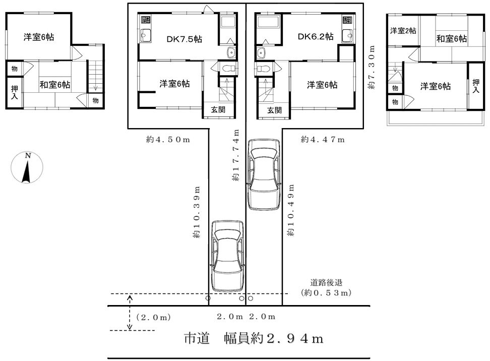 The house features a 7DK layout with a total floor area of 112.79 square meters. It is a two-story wooden structure built in September 1975, making it 51 years old. The land area is 136.86 square meters. The property faces south, which provides warmth in winter and facilitates drying laundry. The listing notes that the property has a gas stove, allowing for proper heating and delicious cooking. The property includes a parking space for two or more vehicles, which is useful not only for the family but also for guests.