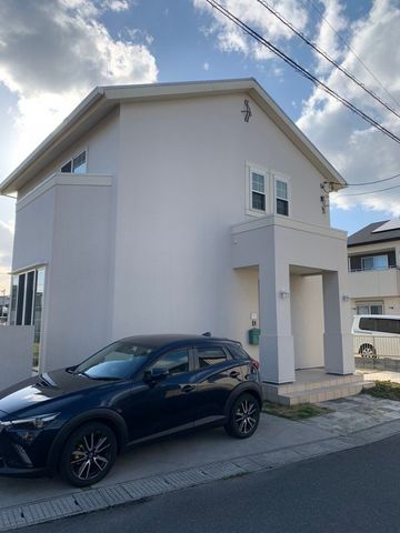 This charming two-story wooden house, built in November 2017, offers a comfortable and stylish living space in Hofu City, Yamaguchi Prefecture. The property features a 2SLDK layout with a total floor area of 109.07 square meters situated on a generous 237.61 square meter plot. Key equipment and features include a system kitchen with a counter-style design that allows for a bar-like atmosphere, an IH cooktop, a bath with reheating function and a drying system, a shower-equipped vanity, a washlet toilet, underfloor heating, a walk-in closet, storage in all rooms, and a TV monitor intercom. The home is all-electric, barrier-free, south-facing, and comes with a parking lot.