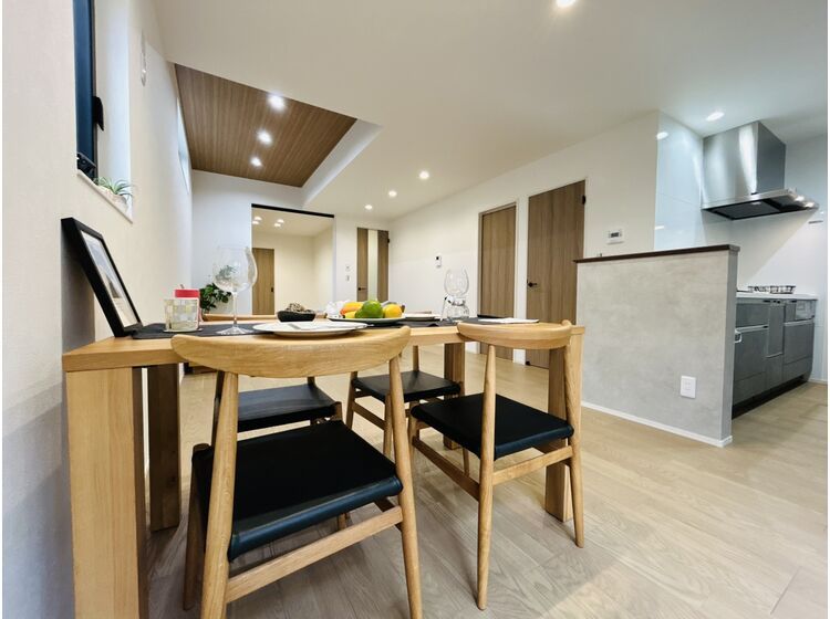 This recently built, two-story wooden house offers a generous and modern living space in the highly desirable Kita area of Fukui City. The property features a 5LDK layout, providing ample room for a growing family. A key highlight is the living and dining area, which incorporates a partial high ceiling, creating a bright and open atmosphere. The kitchen is designed for convenience and family interaction, featuring a counter layout that allows you to cook while communicating with family in the living area. It comes equipped with an induction cooktop and a dishwasher.