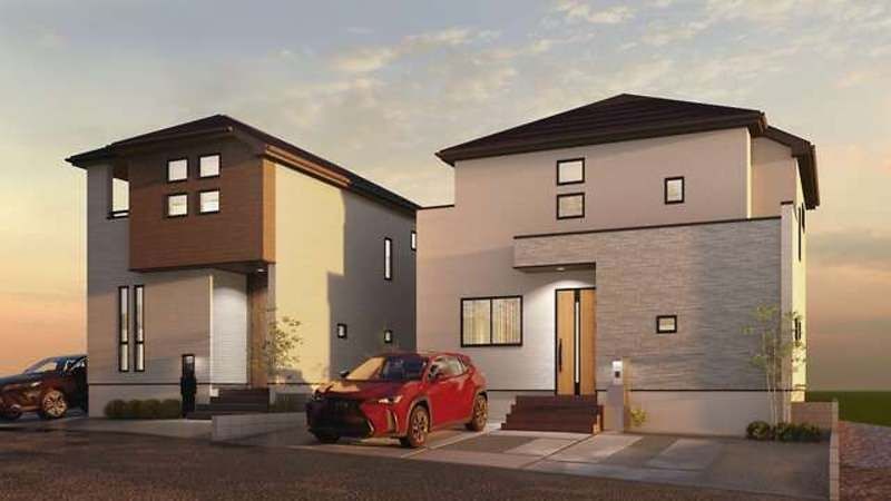 This newly constructed detached house, located in Momohara 2-chome, Okinawa City, Okinawa Prefecture, offers a modern and spacious living environment. The property is a two-story, wood-frame structure with a total floor area of approximately 99.36 square meters (about 30.1 tsubo) on a land plot of approximately 145.73 square meters (about 44.1 tsubo). It features a 4LDK layout with four Western-style rooms and a large combined living, dining, and kitchen area of 18 jo.