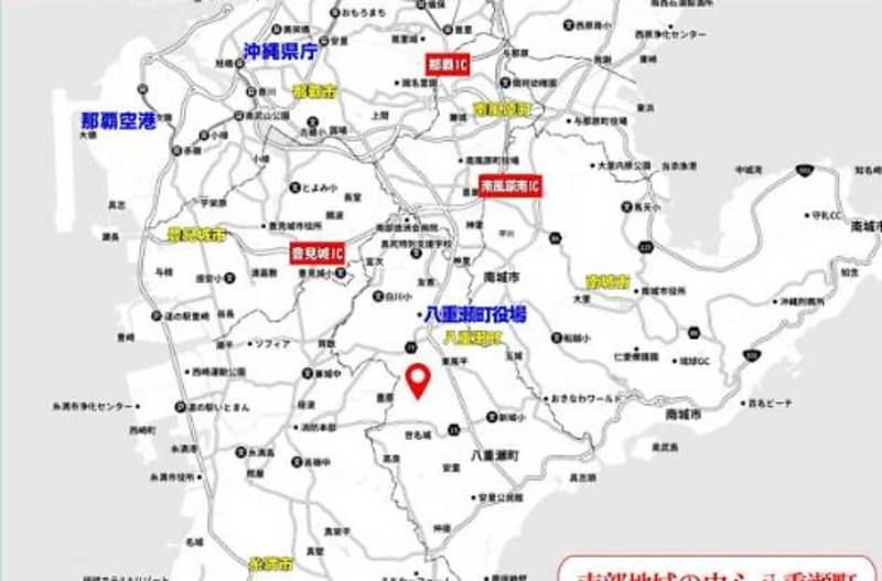 This residential land plot is located in the Shichina district of Yaese Town, Okinawa Prefecture. The property is priced at 9.3 million yen for a land area of approximately 180.08 square meters (about 54.5 tsubo). The plot is designated as residential land (宅地) and is situated within an Urbanization Control Area (市街化調整区域). The land use regulations permit a building coverage ratio (建蔽率) of 60% and a floor area ratio (容積率) of 200%.