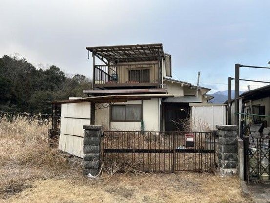 The property includes parking for two cars. Key equipment details are as follows: the gas type is LPG (propane gas), the water supply is from a well, and the drainage type is a cesspool (kumitori). Special notes from the listing indicate the property includes a private road share (land category: mountain forest, lot number: 10174-2). The property is also subject to the Land Development and Specific Fill Soil Regulation Act and the Landscape Act. The building has a noted tilt and a roof leak, and it is located in a landslide warning area. The property is in a low-rise residential exclusive zone, and the land is classified as a residential lot with a sloping terrain. The road access is via a single 5.0-meter-wide private road to the south, with a private road burden area of 19.0 square meters. There is no set-back required. The transaction is a general brokerage.