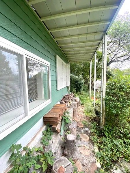 The property features a spacious balcony, perfect for enjoying the surrounding natural beauty, and includes a popular interior wood-burning stove, offering the soothing ambiance of a flickering fire. The layout is practical and comfortable, with a total floor area of 83.34 square meters distributed across three floors. The land size is 140 square meters on a sloping, wooded plot. Essential equipment includes electricity, a private well, an individual septic tank (単独浄化槽), and parking space (PG).