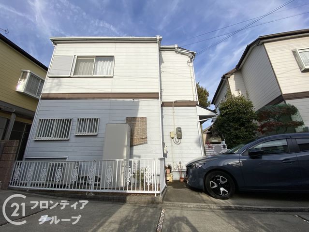 This detached house, located in Hirakata City, Osaka Prefecture, presents a comfortable and secure living environment. The exterior features a calming white color scheme that blends with the surrounding scenery, offering a clean and refined impression suitable for any season. The property is enclosed by a fence, ensuring privacy and providing a sense of security and peace of mind.