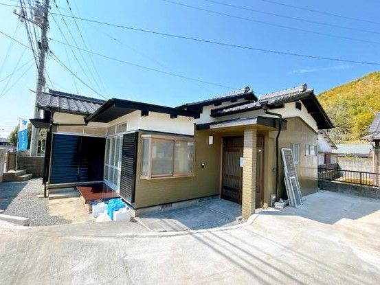 This renovated single-story house is located in Katano-Nishi, Yanai City, Yamaguchi Prefecture. The property features a 2LDK layout with a total floor area of 77.52 square meters on a land area of 185.53 square meters. The building was constructed in January 1971 and has undergone a full renovation scheduled for completion in March 2026. The renovation includes new exterior painting, a new kitchen by Housetec, a new bathroom by Housetec, toilet cleaning with new cushion flooring, and a cleaned vanity unit. The layout has been changed to a spacious LDK of approximately 25 tatami mats. The parking area has been expanded to accommodate two standard cars in tandem. The property also includes termite prevention with a 5-year warranty. The kitchen is a system kitchen with a counter and uses an IH cooking heater. The water supply comes from a well, and drainage is to the sewer system. There is underfloor storage, a shower toilet, and an oil boiler for heating. The gas type is listed as "other." The property is currently vacant and available for immediate occupancy. The land is zoned for Category 1 Medium-to-High-Rise Residential use. The road frontage is a 2.5-meter wide public road to the southeast, with a required setback of 20.0 square meters. The property is a 25-minute walk from Yanai Station on the Sanyo Main Line. The surrounding area includes a Seven-Eleven convenience store (10-minute walk) and a MaxValu supermarket (12-minute walk). This property is eligible for a housing loan tax deduction. The price includes consumption tax and renovation costs. A viewing event is scheduled for April 24-27, 2026.