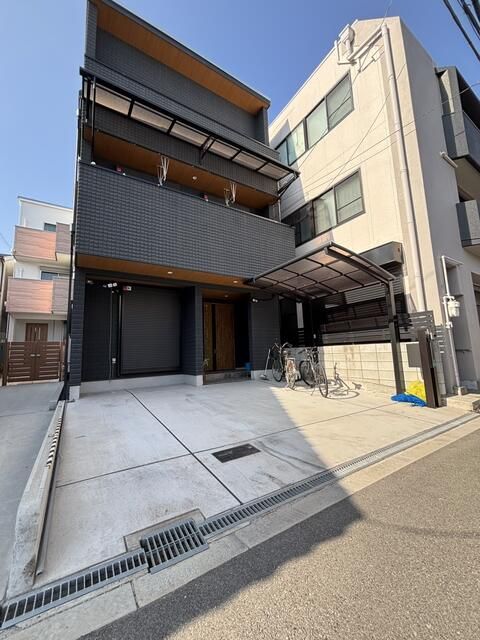 This property is a modern detached house built in January 2023, located in a quiet residential area of Osaka's Suminoe Ward. The house offers a spacious 119.07 sqm (approximately 36.01 tsubo) of living space across three floors, with a 3LDK layout ideal for families. The land is a regular-shaped plot of 81.04 sqm (approx. 24.51 tsubo), providing space for two parking spots and a bicycle parking area.