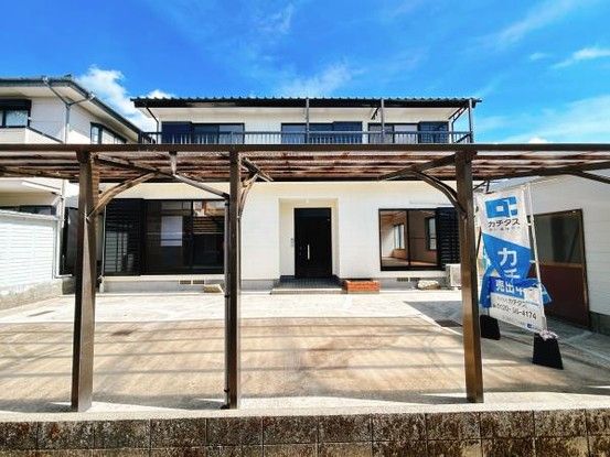 This is a renovated two-story wooden house located in Nagahama-cho 2-chome, Nobeoka City, Miyazaki Prefecture. The property was renovated in April 2026, including the kitchen, bathroom, and toilet. The layout is a spacious 5LDK + LDK, making it suitable for two-generation families or large families. The total floor area is 177.0 square meters (approximately 53.5 tsubo), set on a land area of 261.24 square meters (approximately 79.0 tsubo). The property is a flag lot (flagpole-shaped land) with a 4-meter wide road frontage.