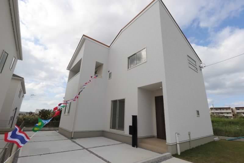 This new construction detached house, currently under development, offers a spacious 4LDK layout with a total floor area of approximately 107.23 square meters (about 32.4 tsubo). The property is situated on a land plot of about 238 square meters (72 tsubo) in Nago City, Okinawa Prefecture. The building is a two-story wooden structure with a south-facing orientation for optimal sunlight.