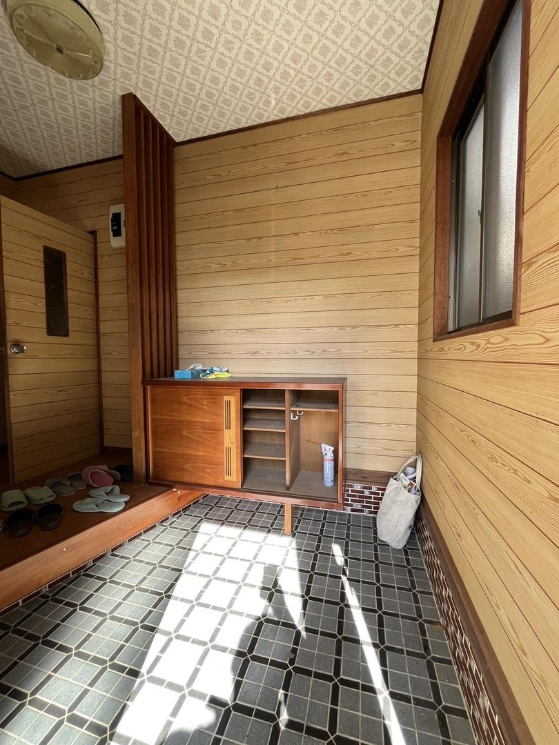 The property benefits from excellent sunlight due to its south-facing road frontage with no obstructions. It is situated in a quiet residential neighborhood. The land fronts a public road to the south, which is 2.8 meters wide and paved, with a frontage of 12.4 meters. Utilities are well-established, with city gas, public water supply, and sewerage all available. The existing house, built in August 1971, is a two-story wooden structure with a total floor area of 121.2 sqm. The layout is a 5DK, comprising on the first floor: a 7.5-tatami mat DK (dining-kitchen), a 9-tatami mat Western-style room, two Japanese-style rooms of 7.5 and 6 tatami mats, and an engawa (veranda). The second floor contains an 8-tatami mat Western-style room and a 6-tatami mat Japanese-style room. The property also includes storage space.