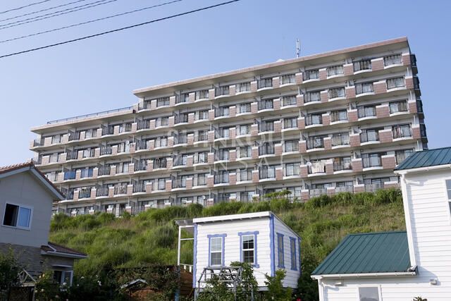 This property is a 1LDK apartment located on the 1st floor of a 6-story condominium building named Purple Chateau, built in June 1997. It offers a spacious living-dining area of approximately 24 tatami mats (about 19.5 jo) and features a unique Japanese-style corner of about 4.5 tatami mats, providing a versatile space. The apartment is a corner unit with a southwest-facing orientation, ensuring three-sided natural light and panoramic views of the Sea of Japan from its 9.96 sqm balcony.
