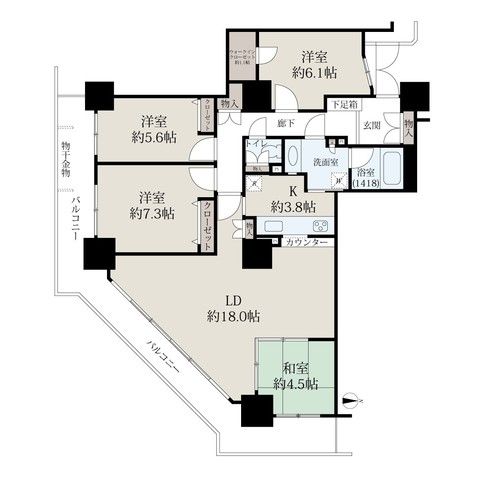 This property is a 25-year-old reinforced concrete apartment located in Otsu City, Shiga Prefecture. The unit is situated on the 2nd floor of a 38-story above-ground, 1-story below-ground building, offering a spacious 4LDK layout with a private area of 99.91 square meters and a balcony area of 22.92 square meters. The main living areas face south for good natural light.