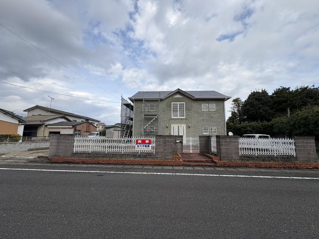 This substantial second-hand detached house in Matsuura City's Imafuku-cho offers a generous plot and a building with a strong presence. The property is conveniently located just about 2 minutes by car to Imafuku Station and approximately 1 minute to the Imafuku Interchange, making it ideal for commuting and travel. The land area is approximately 147.57 tsubo (about 488 square meters), providing ample space. The building is a solid two-story Western-style home with a total floor area of about 51.32 tsubo (approximately 169.7 square meters). The stone-textured exterior walls create a sense of luxury and a distinguished appearance that stands out in the neighborhood.