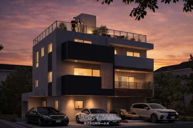 This property is a new build detached house currently under construction in Ginowan City, Okinawa Prefecture. It is part of the Ginowan II B block and is designed to meet ZEH (Net Zero Energy House) standards for high energy efficiency. The house is a three-story reinforced concrete (RC) structure with a total floor area of 130.34 square meters (39.42 tsubo) on a flat land plot of 83.5 square meters (25.25 tsubo).