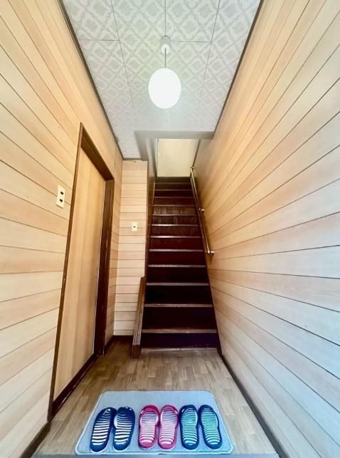 This property is a two-story steel-frame house built in March 1978, offering a compact yet functional living space. The layout is a 4K configuration, providing four rooms plus a kitchen/dining area. The total land area is 36.19 square meters, with a building floor area of 42.46 square meters. The property is situated in a prime location, approximately an 8-minute walk from Hankyu Imazu Line's Nigawa Station, ensuring excellent access to public transportation.
