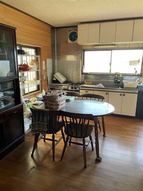 This property is a detached house for sale located in Nishio City, Aichi Prefecture. The house was built in January 1983 and features a wooden structure with a single-story layout. The total floor area is 77.01 square meters (approximately 23.29 tsubo), arranged in a 3DK configuration consisting of three Western-style rooms (8-tatami, 6-tatami, and 6-tatami) and a 9-tatami dining kitchen.