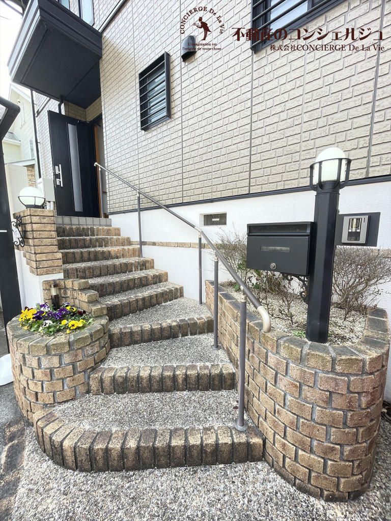 The property is equipped with a system kitchen that integrates the cooking area, storage, and other functions, making cleaning and upkeep easier. The kitchen offers a view into the living room. The bathroom includes a re-heating function (追い焚き), allowing for warm baths at any time. Other equipment includes public water supply, city gas, sewer system, a dedicated bath and toilet, a gas cooktop (three-burner), hot water supply, a washbasin with shower attachment, underfloor storage, a dedicated garden, a balcony, flooring, a TV door phone, barrier-free features, a heated toilet seat, a counter kitchen, a separate washroom, a bathroom sized at 1 tsubo (approx. 1.6m x 1.6m) or larger, a shoe cupboard, a building confirmation completion inspection certificate, design documents from the time of new construction/renovations, a regular-shaped plot, two or more toilets, a stairwell void, a garden over 10 square meters, a wide balcony, double-glazed windows/sashes, and a garage with a high-roof parking space.