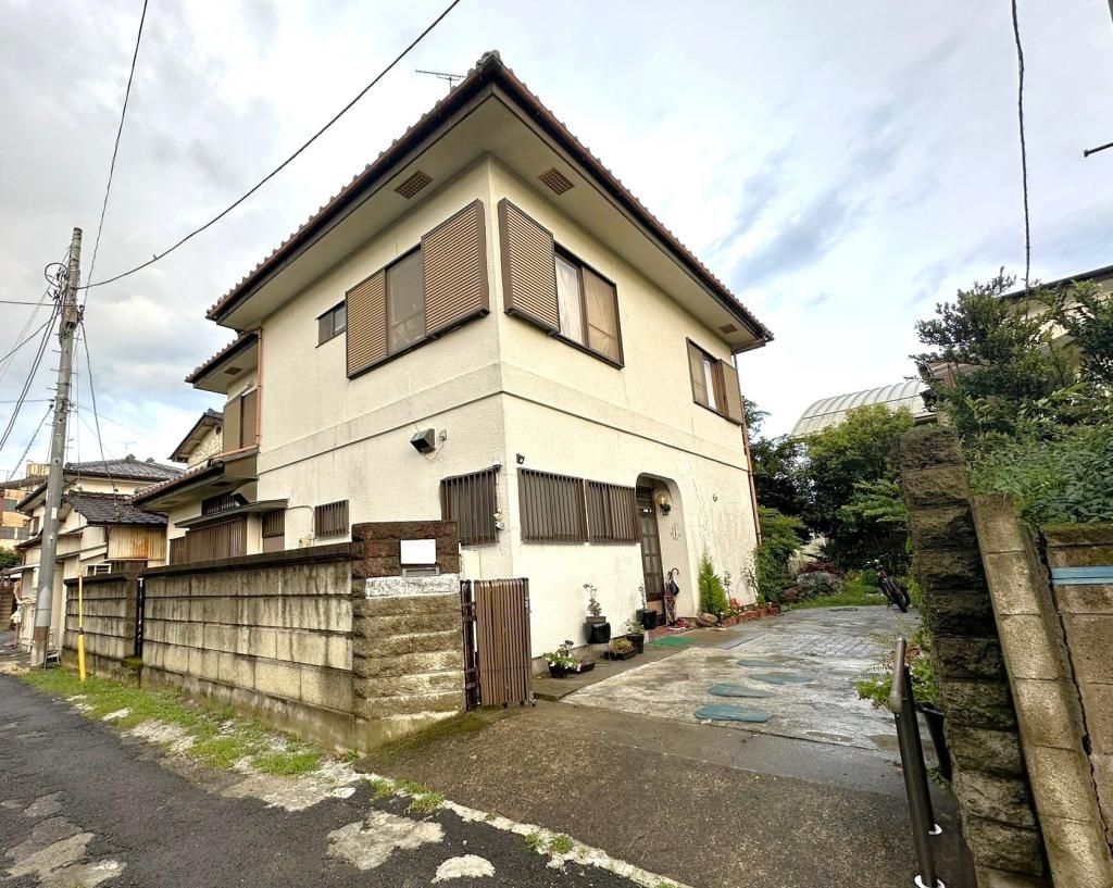 This two-story detached house, located in a quiet residential neighborhood, offers a generous 7DK layout across a total floor area of 155.28 square meters. Built in January 1983, the property sits on a large 323.71 square meter corner plot, providing ample space and privacy. The home features a separate bath and toilet, is connected to the public sewer system, uses propane gas, and has a public water supply. The property includes parking for two or more vehicles and is equipped with amenities such as a south-facing orientation, a system kitchen, two toilets, a reheating function for the bath, and a monitor-equipped intercom, making it suitable for multi-generational living.