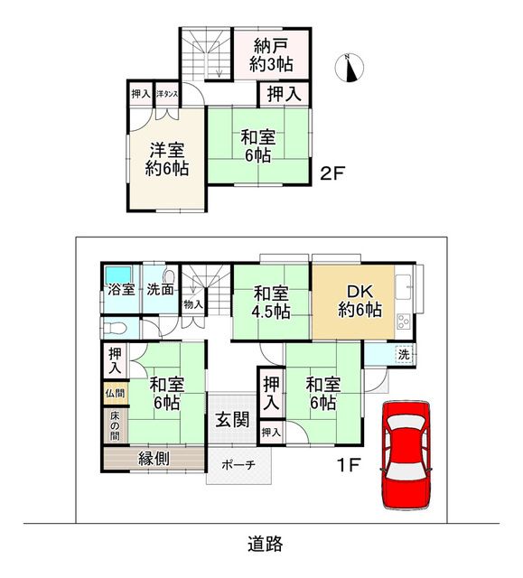 This well-established two-story house, built in 1981, offers a generous living space of approximately 116.41 square meters on a plot of about 158.70 square meters (approximately 48 tsubo). The property is strategically positioned on the south side of the road, ensuring excellent sunlight throughout the day. The layout is a functional 5SDK, providing ample room for a family. A notable feature is the inclusion of an approximately 3-jo (tatami mat) storage room, offering valuable extra space for belongings.