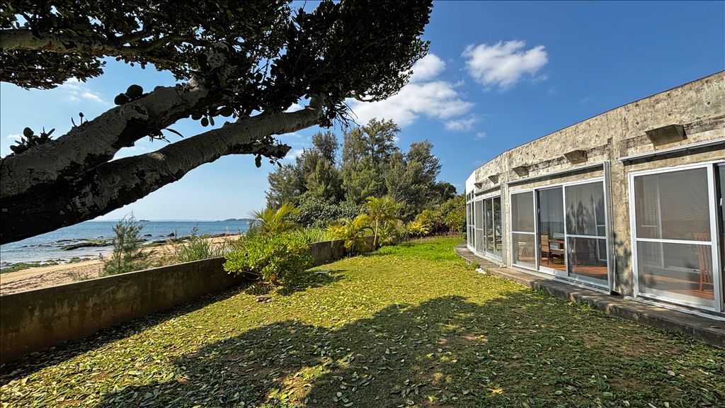 This exceptional beachfront villa in Okinawa's Ginowan Village offers a rare opportunity to own a property just 29 meters from the water's edge. The reinforced concrete two-story residence provides panoramic ocean views from every room, allowing residents to live with the sound of waves and sea breeze as a daily backdrop. The property features a spacious terrace with a jacuzzi, perfect for enjoying the stunning Okinawan seascape.