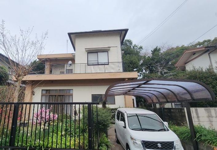 This property is a detached house for sale in the highland area of Tobe Town, Ehime Prefecture, offering a comfortable living environment with excellent views. The house features a reinforced concrete (RC) structure, ensuring durability, and sits on a generous plot of land with a spacious garden. The layout is a 5SDK, providing five rooms plus a dining-kitchen area, suitable for larger families or those desiring ample space.