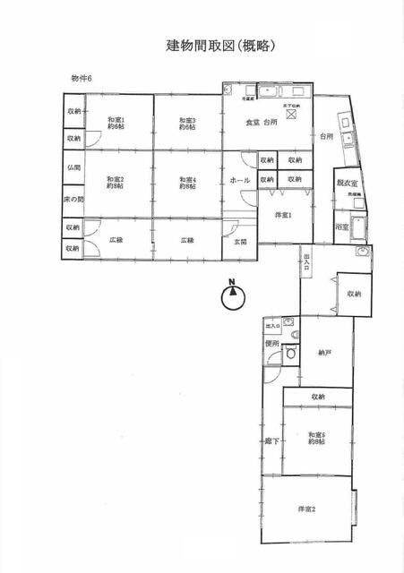This property is a detached house for sale located in a quiet residential area adorned with lush greenery in Inazawa City, Aichi Prefecture. The house is a single-story wooden structure built in October 1964, offering a generous total floor area of approximately 250.26 square meters (about 75.7 tsubo). The layout is a substantial 7SDK, comprising five Japanese-style rooms (two 6-jo, three 8-jo), two Western-style rooms (4.5-jo and 10-jo), a 10-jo dining-kitchen area, and two service rooms (3-jo and 6-jo). The property includes a balcony and a garden.