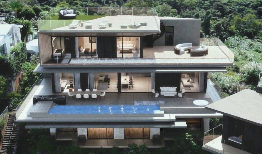 ESQVA THE HEAVENS OKINAWA is a luxury villa resort brand born from the desire to create a unique experience that is neither a typical villa nor a hotel. The brand's philosophy, encapsulated by the acronym ESQVA, is centered on creating a utopian experience: Eternal: A longing for unchanging nature. Stirring: A special, heart-moving impression. Quietude: Deep healing and peace brought by tranquillity. Verve: An upwelling of passion and vitality for the future. Arcadia: A supreme time reminiscent of an ideal land. The resort aims to deliver ultimate comfort and unparalleled impression on a unique hilltop, surrounded by the emerald, green sea and lush primeval forest.
