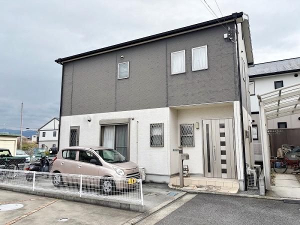 This well-maintained 4LDK detached house, built in March 2012, is located in a quiet residential area of Handa, Kaizuka City, Osaka Prefecture. The property offers a comfortable living environment with a total floor area of 94.77 square meters on a 117.12 square meter plot. The exterior provides a sense of tranquility, and the property includes parking space for two light vehicles.