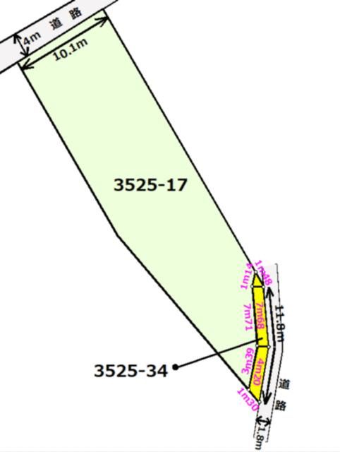 Key facilities and equipment include city gas, water supply, sewer system, air conditioning, electricity, two toilets, a reheat function for the bath, a counter kitchen, and underfloor storage. The property benefits from road access on two sides (excluding corner lots): a 4-meter wide public road to the northwest with a 10.1-meter frontage, and a 1.8-meter wide private road to the south with an 11.8-meter frontage, with a designated location permit.