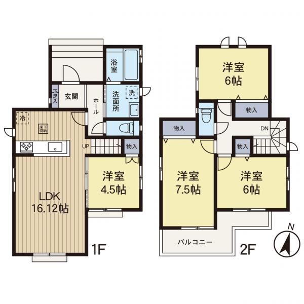 The house is equipped with modern amenities for comfortable living, including a system kitchen with a counter, water purifier, a bathroom larger than 1.6x1.6 meters with a reheating function and dryer, two toilets with warm-water washing bidet seats, and underfloor storage. The interior boasts hardwood flooring throughout, an energy-efficient water heater, and dual-aspect natural lighting in all rooms. Security is enhanced with a TV monitor intercom system.