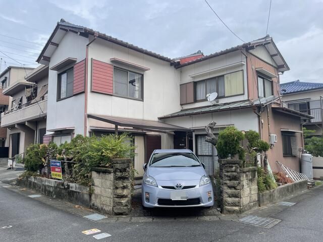 This property is a detached house for sale located in a quiet residential area of Aisai City, Aichi Prefecture. The house is situated on a southeast-facing corner lot, which is a regular-shaped plot of land. The building itself is a two-story wooden structure built in June 1973. The total floor area is 91.9 sqm (approximately 27.79 tsubo), and the land area is 103.34 sqm (approximately 31.26 tsubo). The floor plan is a 5DK layout, consisting of four 6-tatami Japanese-style rooms, one 8-tatami Western-style room, and a 7-tatami dining-kitchen area. The property includes a garden and a free parking space.