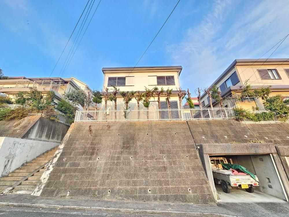 The land size is approximately 168.18 sqm (about 50 tsubo), with a building area of 130.38 sqm (about 33 tsubo), including the 19.66 sqm underground garage. The layout is spacious, characteristic of a large home. The property is situated on a retaining wall, offering privacy from the road, and enjoys unobstructed views with no buildings directly in front. The garden area is currently soil, allowing for potential use as a vegetable garden, and additional work to create an outdoor living space connected to the living room is possible.