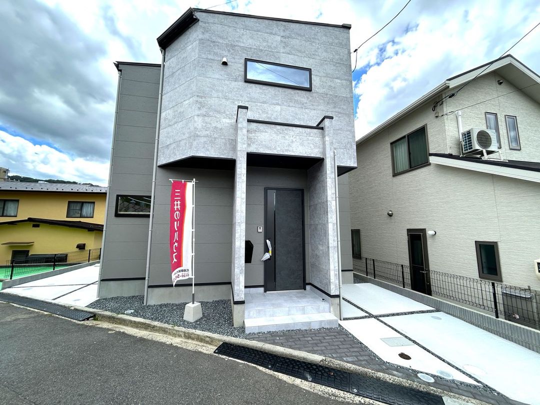 This newly constructed detached house is located in Miyanocho 4-chome, Fuchucho, Aki District, Hiroshima Prefecture. The property offers a comfortable 3LDK layout with a total floor area of 92.74 sqm (approximately 28.05 tsubo). The living, dining, and kitchen area is a spacious approximately 16.3 tatami mats in size, featuring a face-to-face kitchen that facilitates conversation with family. The house includes ample storage space.