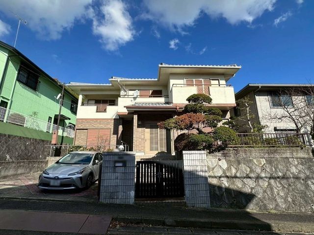 This detached house is located in the quiet residential area of Koyogaoka 2-chome, Nagaokakyo City, Kyoto Prefecture. The property is currently being renovated (リフォーム中). It is a 5LDK layout with a building area of 165.23 square meters on a land area of 221.86 square meters. The building is a two-story wooden structure built in August 1997. The property features a system kitchen with a counter kitchen, an IH cooking stove, and a gas cooking stove. Bathroom amenities include a reheating function, a bathroom dryer, and a shower-equipped vanity. The toilet has a heated toilet seat. Interior features include a walk-in closet, storage in all rooms, a TV monitor intercom, and underfloor heating. The property is all-electric, barrier-free, and south-facing. It has a dedicated parking space. Utilities include public water supply and city gas. The property is vacant and available for immediate occupancy.