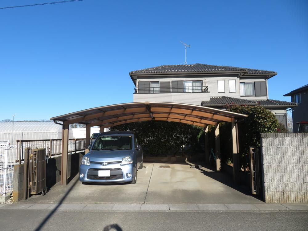 The property is equipped with public water supply, an individual septic tank, and individual LPG. Key features include a south-facing orientation for excellent sunlight, a system kitchen, a bathroom dryer, a washbasin with shower, a separate toilet, and under-floor storage. The home boasts two toilets, a spacious bathroom over 1 tsubo in size, and all rooms are at least 6 tatami mats. The carport can accommodate two vehicles side-by-side, and the front road is over 6 meters wide. The property is situated on flat land, offering easy access.
