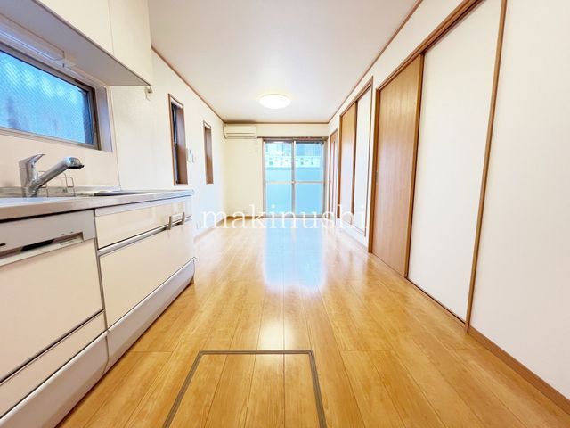 The agent's notes highlight several key features. The property is equipped with a gas system kitchen that includes a dishwasher-dryer, complete with upper hanging cabinets for plentiful storage, ensuring the kitchen remains tidy. The bathroom is a large unit where even a tall adult can stretch out, and it includes a reheating function, allowing comfortable bathing for families with varying schedules. For security, a TV monitor doorphone is installed. The home also features a powder room with a washbasin and makeup counter equipped with a shower hose for easy cleaning, and a three-way mirror with substantial storage behind it. Toilets are located on both the first and second floors, easing morning congestion, and both are fitted with warm-water washing toilet seats. The entrance includes a large shoe box with a mirror, and the property comes with a free parking space for one car. The living-dining area is bright and spacious with large French windows, and a balcony provides ample space for drying laundry. All rooms include storage. The property is currently vacant and viewings are available at any time.