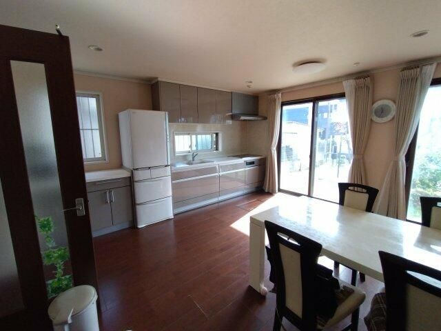 The home is equipped with numerous desirable features for modern, convenient living. Key equipment includes underfloor heating, a system kitchen, a walk-in closet, a bathroom with a shower and separate washbasin vanity, a toilet with a warm-water bidet seat and reheating function, and monitor-equipped intercom. The property is all-electric for peace of mind and includes a solar power generation system. All main rooms feature flooring.